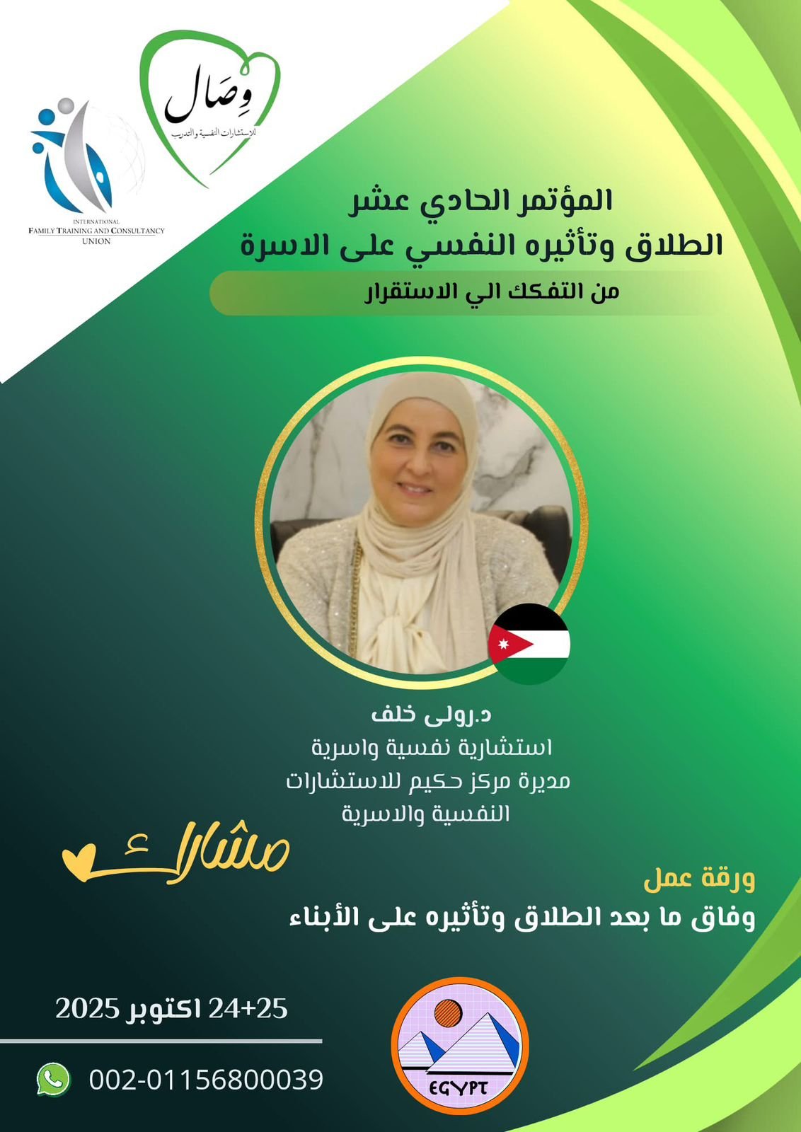 وفاق ما بعد الطلاق وتأثيره على الابناء مشاركة الدكتورة رولا خلف بورقة عمل بعنوان: وفاق ما بعد الطلا