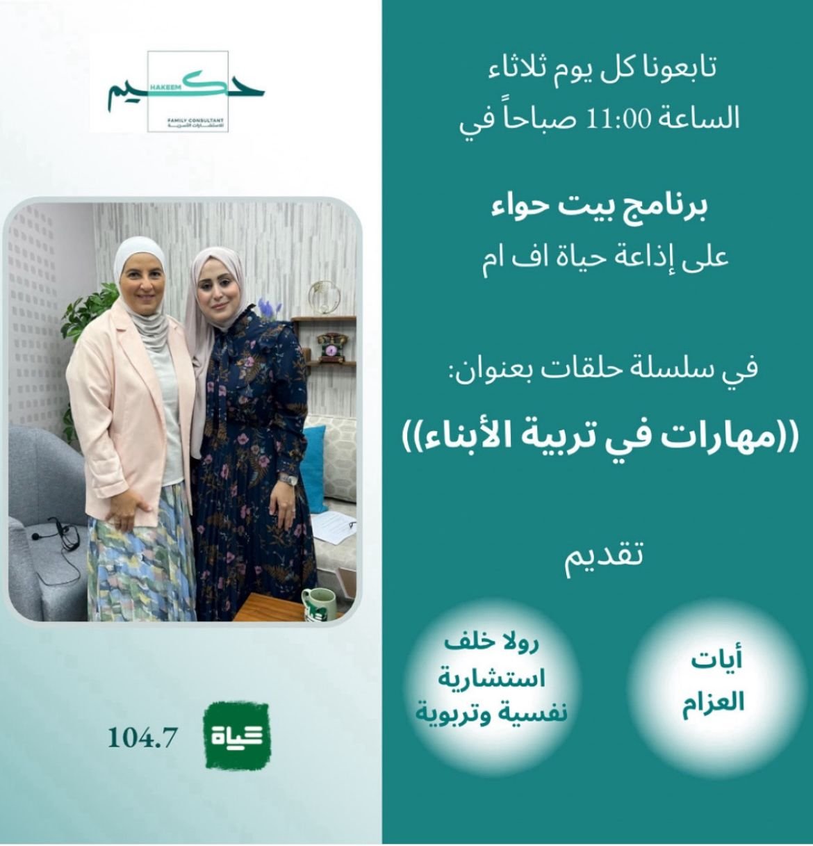 مهارات في تربية الابناء مشاركة الدكتورة رولا في سلسلة حلقة اسبوعية على اذاعة حياة اف ام في برنامج ب